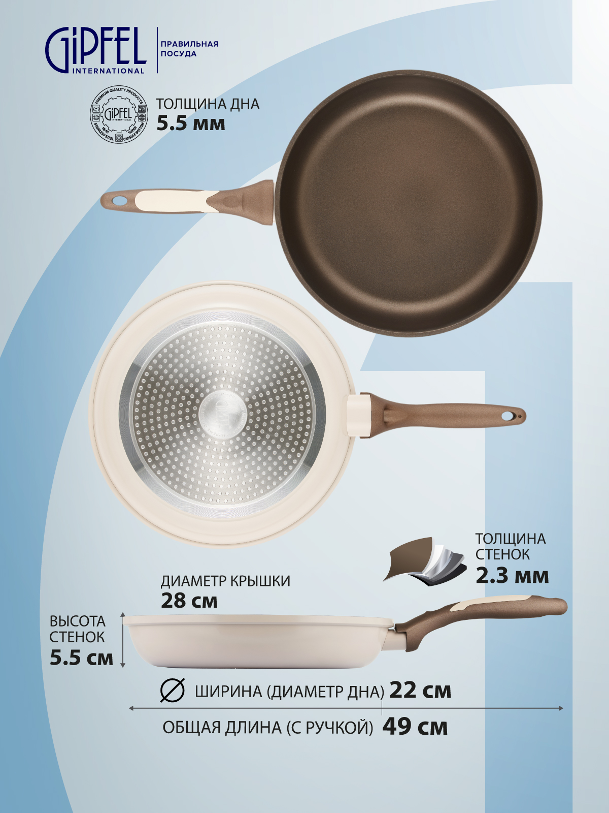 Алюминиевая сковорода Gipfel Stadella Beige 51103 28 см